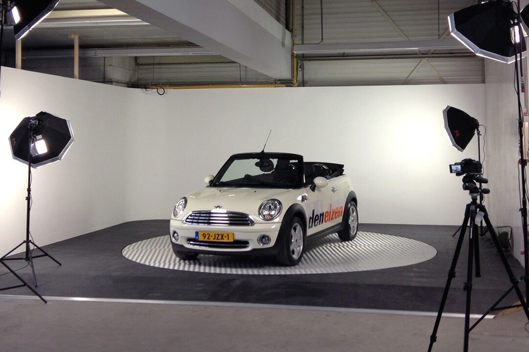 Photographing cars is a time-consuming activity, especially when you do it outside or in a corner of the showroom. And the results are often far from perfect: colours that don’t come out right, too much or too little light and an inconsistent background.