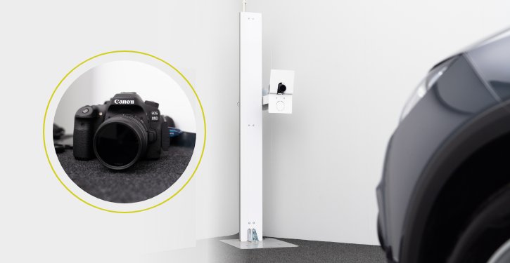 Take razor-sharp pictures with the exterior camera on an industrial tripod. This way, the camera is firmly mounted and you get uniform images of every car. The dedicated detail camera captures all the details and the interior.